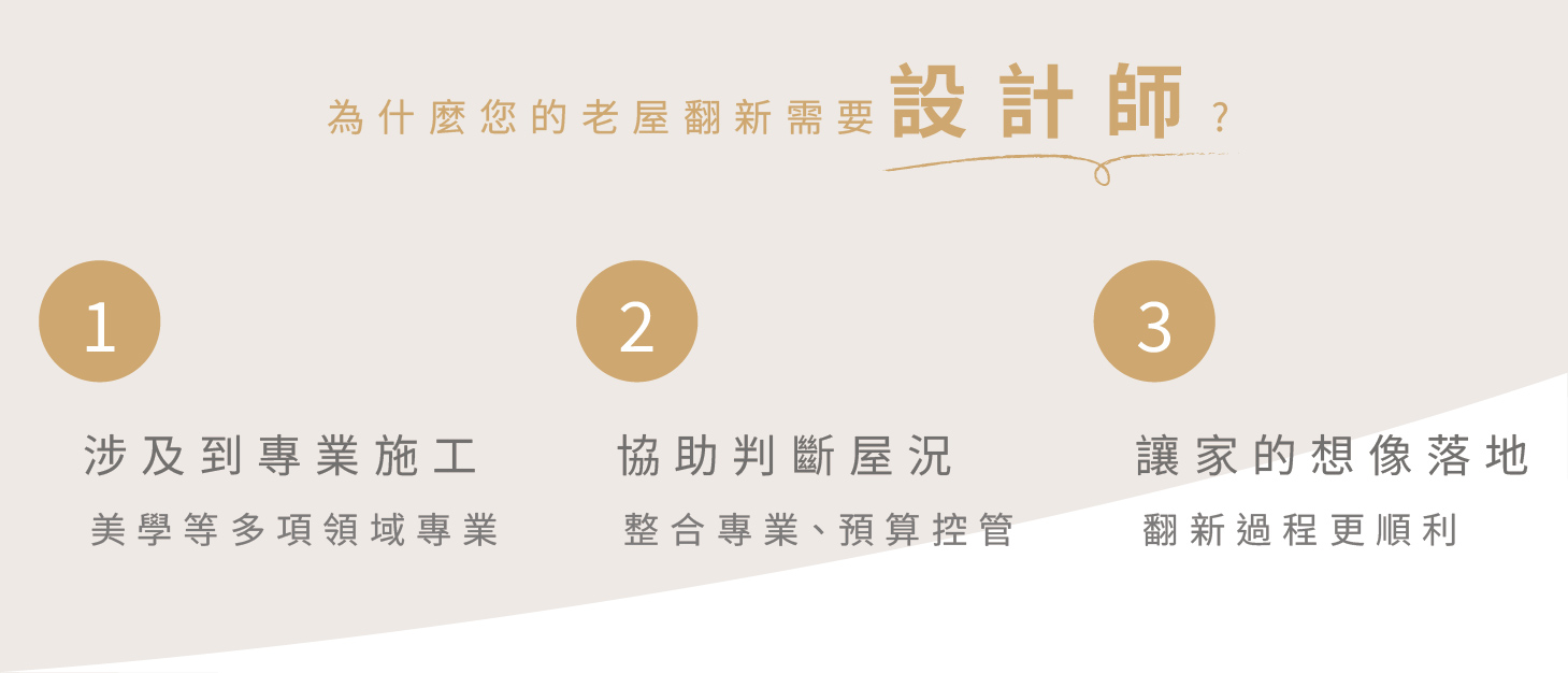 | 格局 | 格局改造能讓老屋更貼近現代生活。 在不影響主體結構下,透過隔間調整釋放空間、改善採光與動線,讓居住更開闊舒適。 |