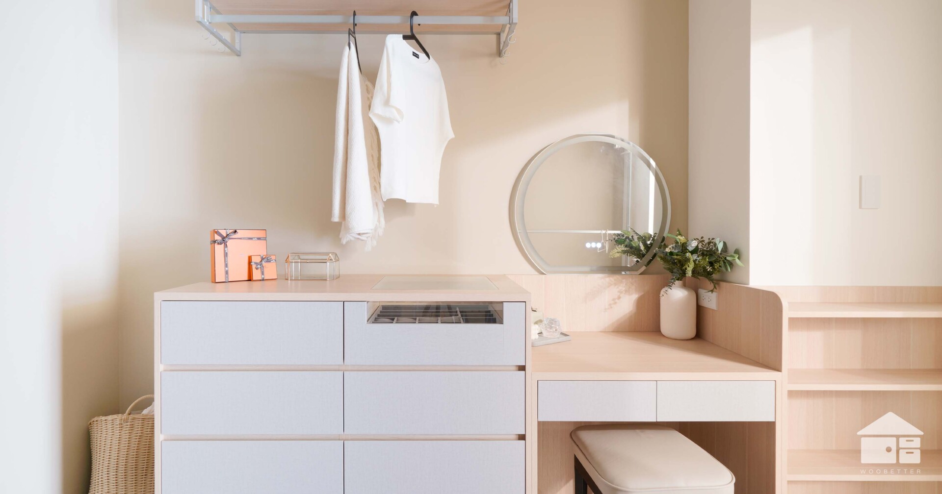 為了避免過於單調,空間中偶爾也會加入小範圍的跳色,例如灰藍、鵝黃或莫蘭迪綠,這些活潑的點綴,如同微風拂過湖面所產生的漣漪,為空間帶來柔和又俏皮的律動。