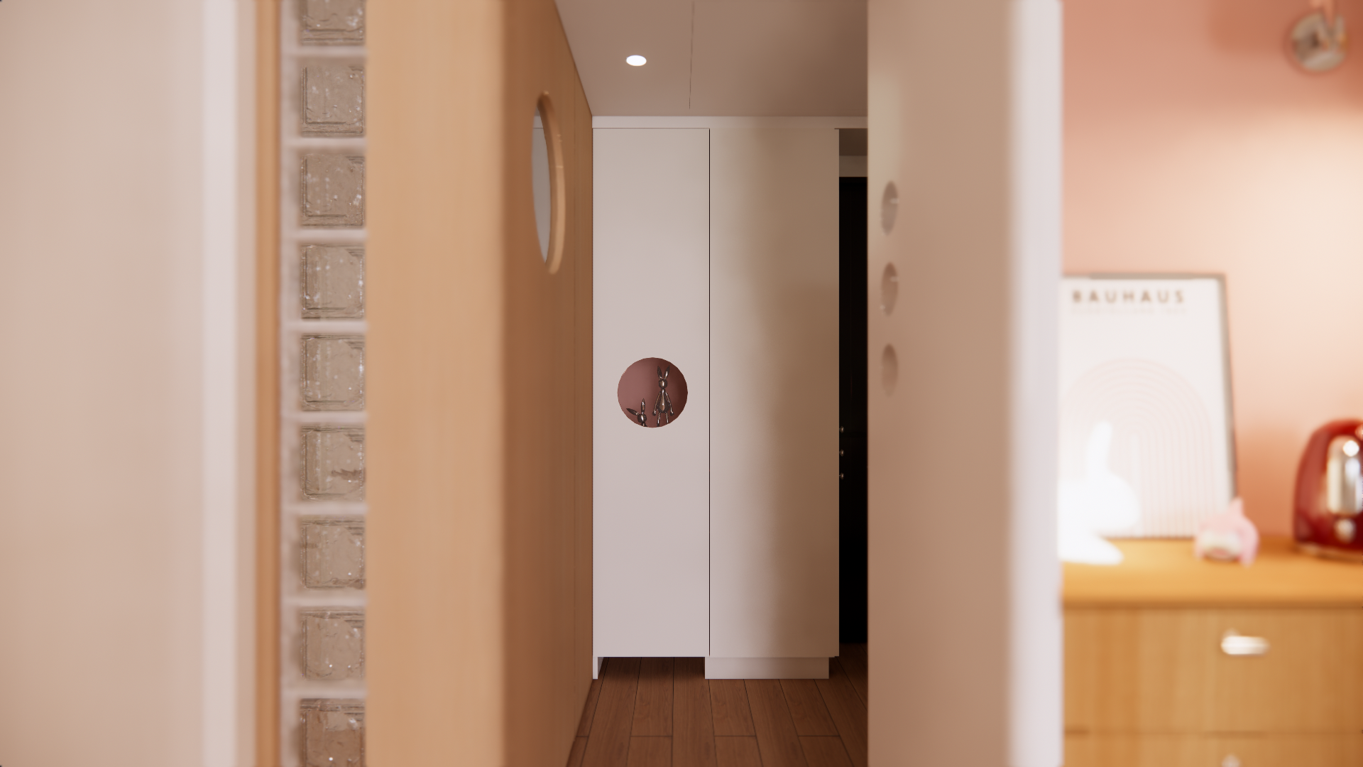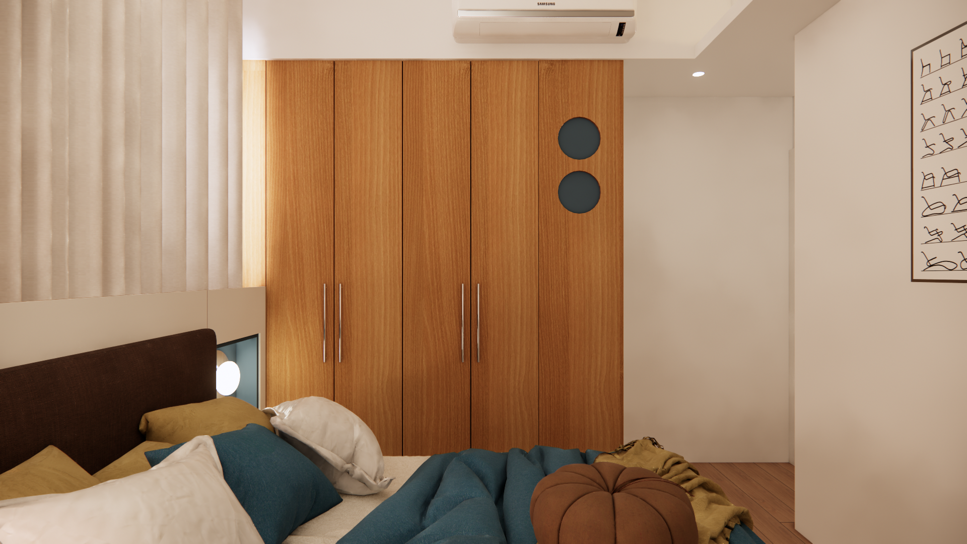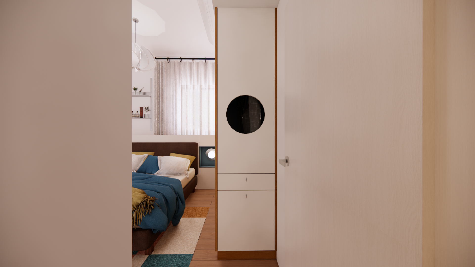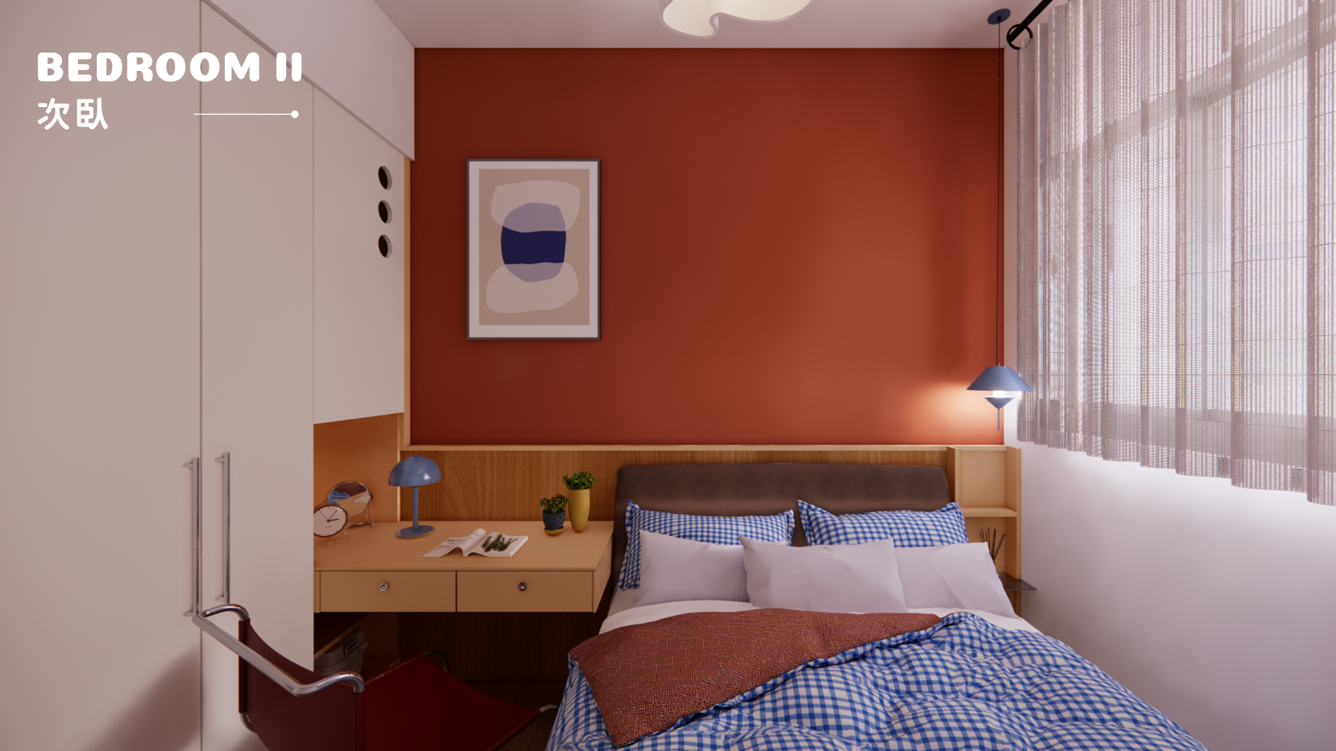 以原木色奠定自然質感,搭配幾何圖形與大膽撞色,打造極具辨識度的藝術居家風格。