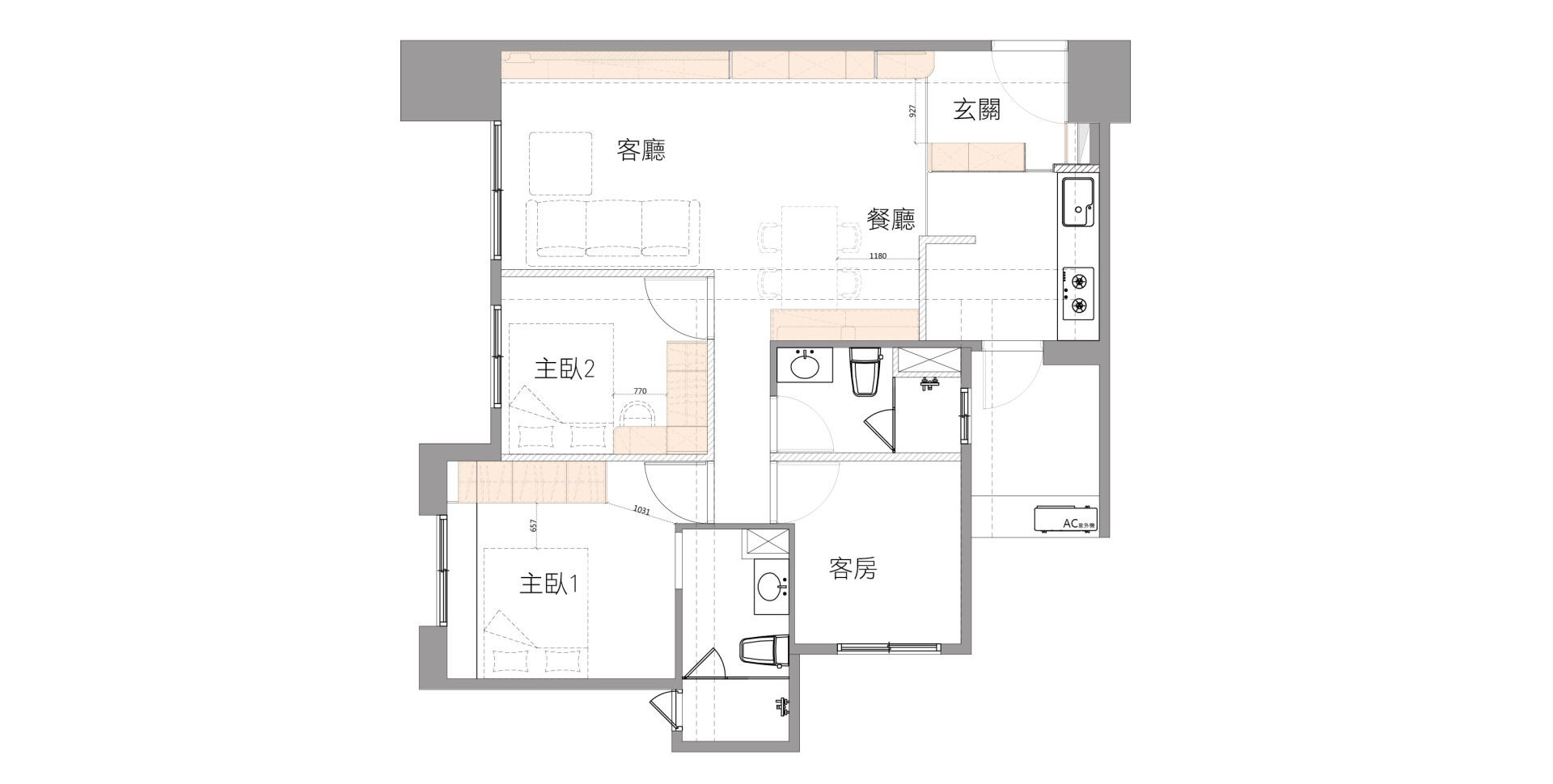 這是一個屬於兩姊妹的家。由於屋主對於家具與家飾的挑選有自己的想法,因此設計師以低飽和的米白色作為空間的主要基調