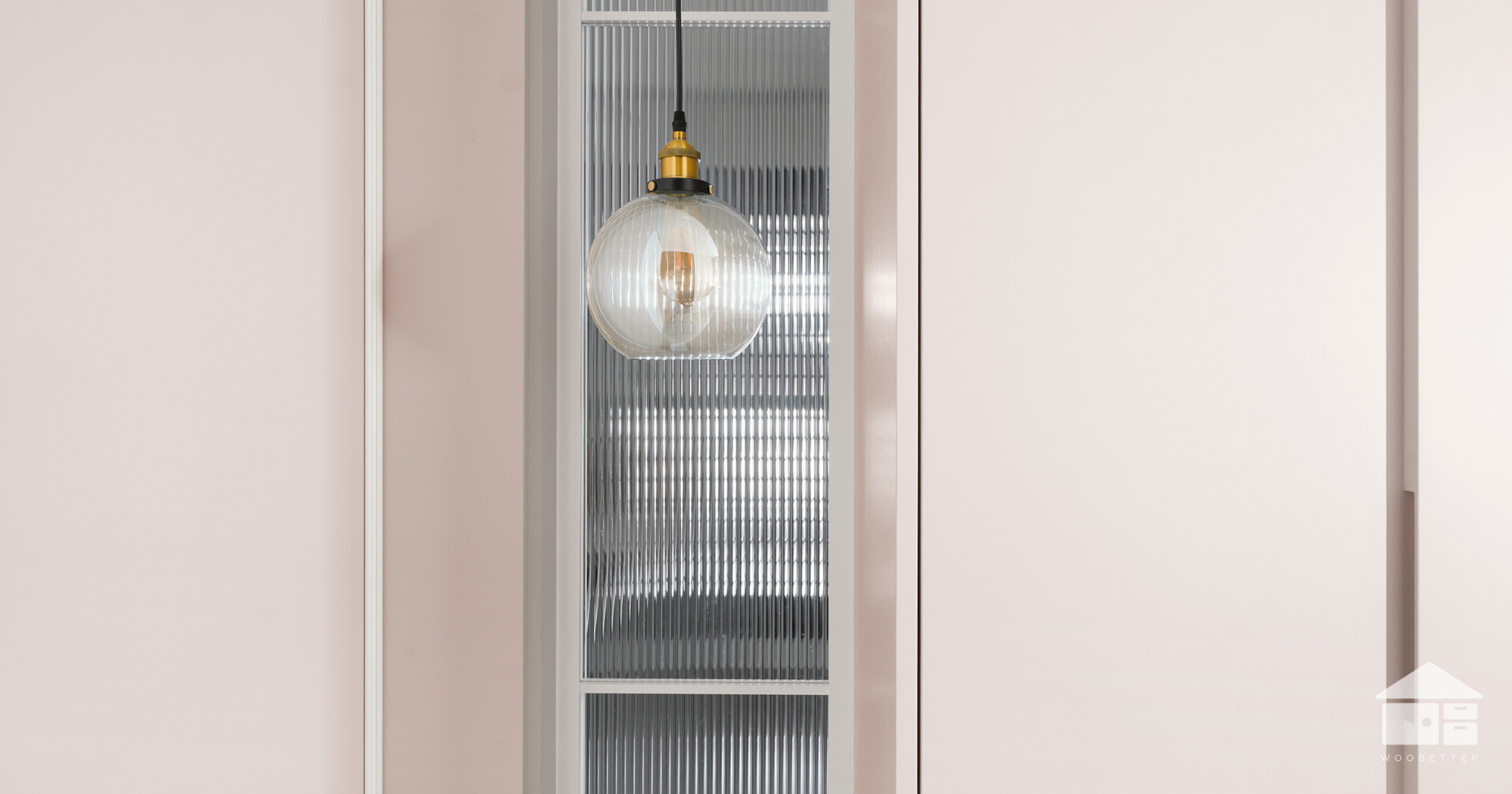 同時,考量到入門時的視覺感受,設計師在櫃體旁搭配一面長虹玻璃,引入自然光線,使玄關不再因狹長比例而顯得壓迫,呈現出柔和且通透的氛圍。
