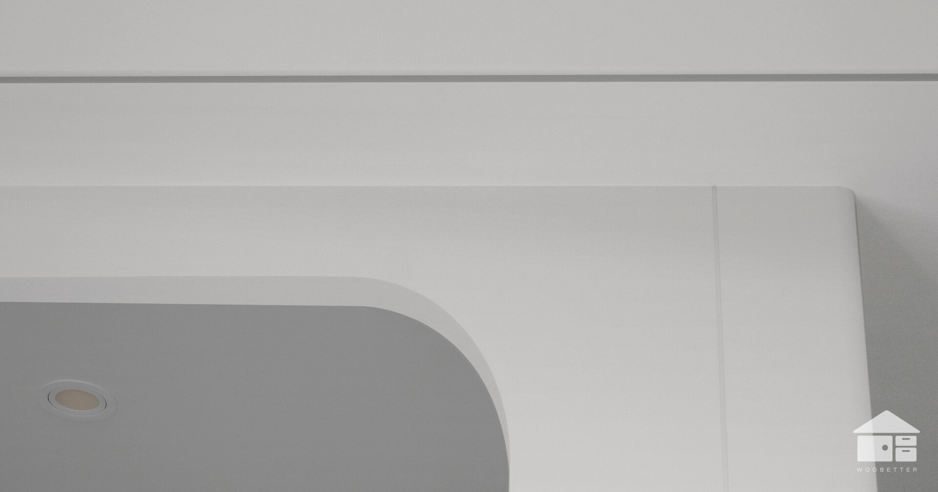 ・客廳|電視牆採用弧形內凹式設計,將展示區域收於牆內