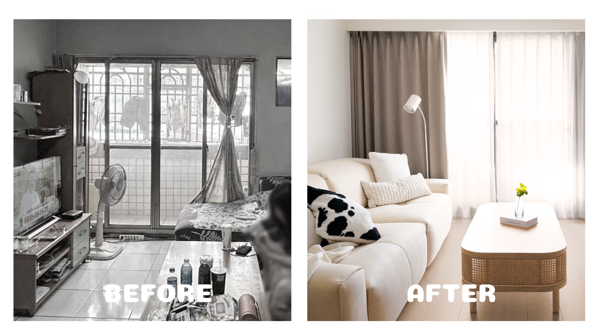 設計師在原有的白色磁磚上,重新鋪設了溫潤的木地板,搭配淺色的牆面與家具,營造出溫馨舒適的居家氛圍。
